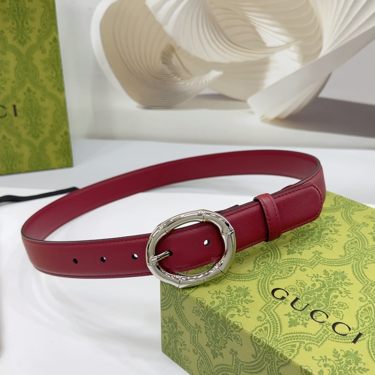 Gucci Women’s Round Bamboo Buckle Belt In Black/Red/White/Brown/Coffee Smooth Calfskin With Gold/Silver Hardware 30mm