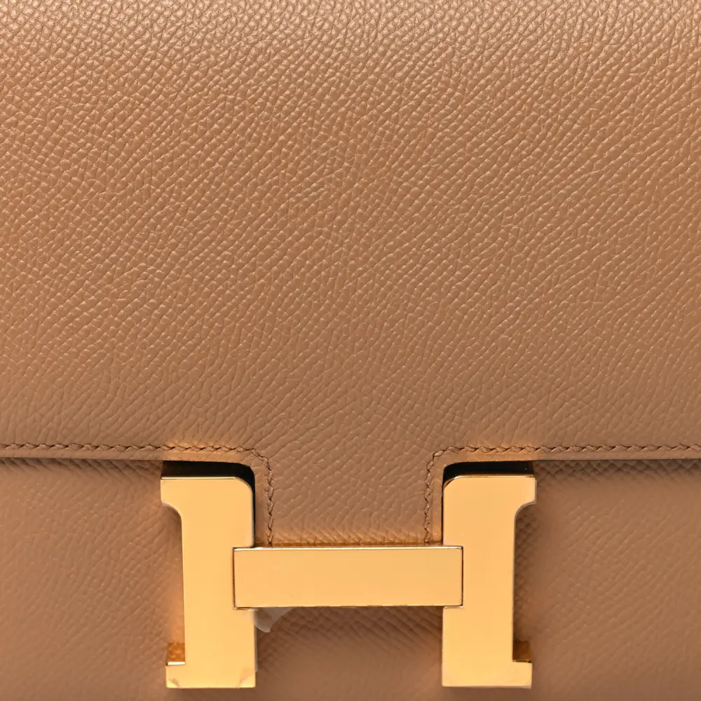 This Hermès Constance 18 in Chai Epsom Leather offers understated elegance. The warm beige tone is paired with gold hardware for a refined look. Compact yet functional, it’s perfect for carrying essentials in style. Durable Epsom leather ensures longevity and sophistication. A versatile piece for casual and formal occasions. A classic addition to any Hermès collection.