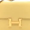 This Hermès Constance 18 Long Wallet To Go in Jaune Poussin Epsom leather is a chic and functional piece. The structured design is complemented by luxurious gold hardware. Featuring a detachable strap, it transitions effortlessly from wallet to crossbody. The interior offers multiple compartments for cards, cash, and coins. Its compact size makes it perfect for both day and evening use. A versatile addition to any Hermès collection.