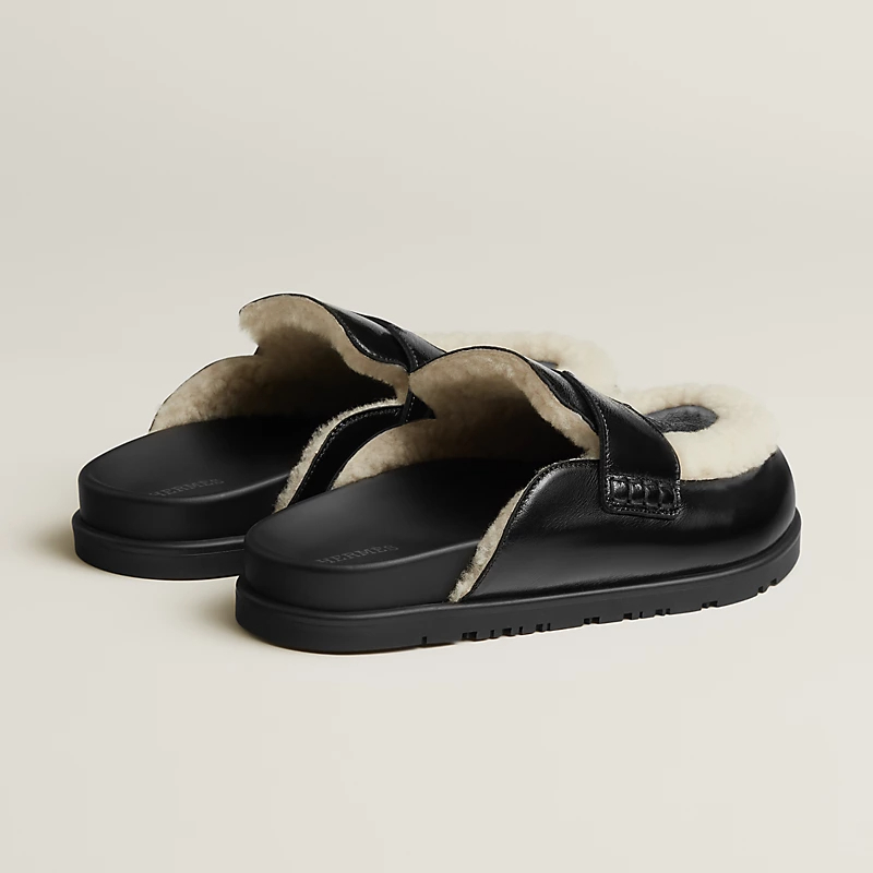 HERMES Go Mule Black Slippers