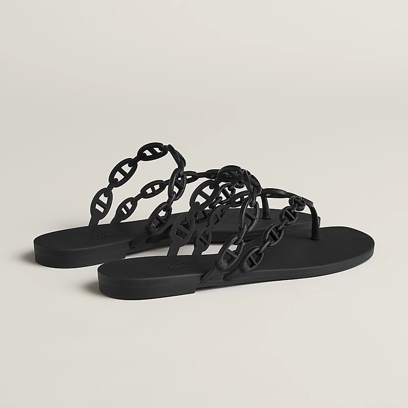 HERMES Island Black Slippers