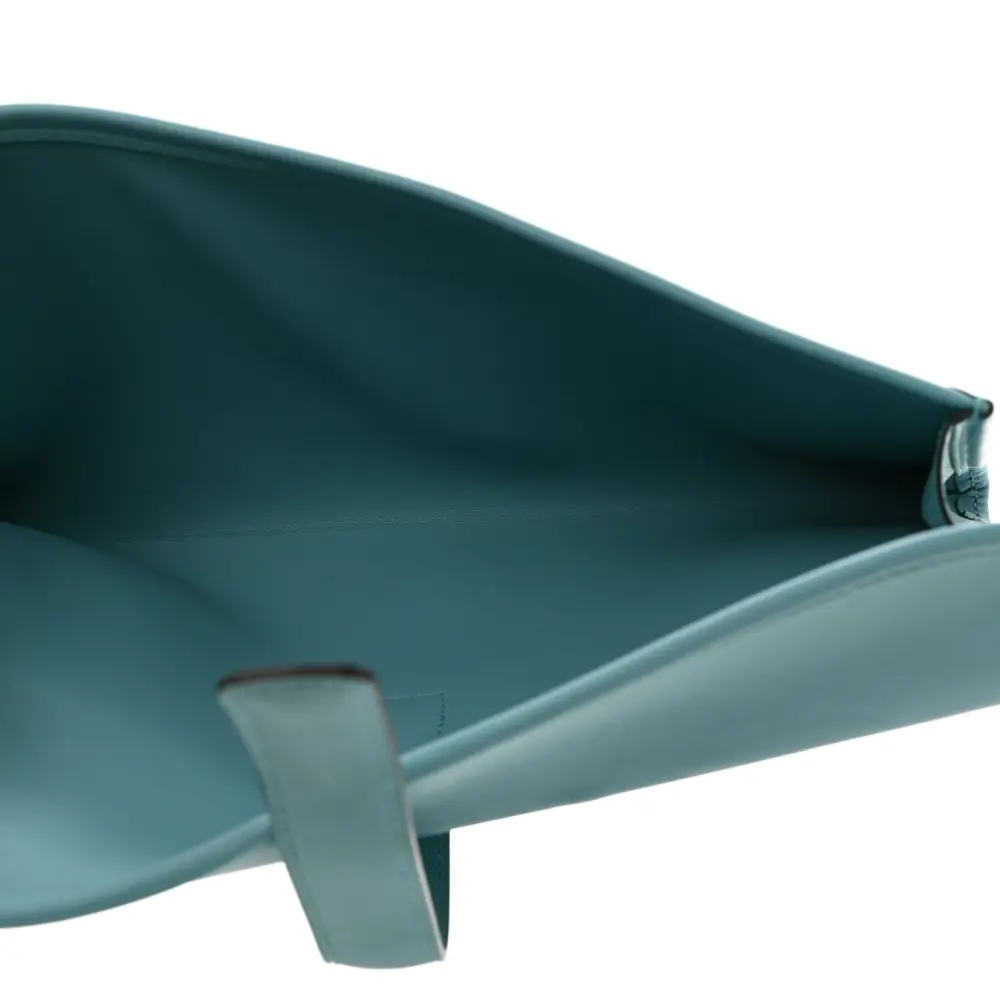 This Hermès Jige Elan 29 Clutch in Bleu Atoll Swift Leather is a stylish accessory. Crafted from smooth Swift leather, it offers a refined look. The vibrant hue adds a playful touch to your wardrobe. Compact yet spacious, it’s perfect for special occasions. A testament to Hermès craftsmanship and elegance. Elevate your collection with this chic piece.