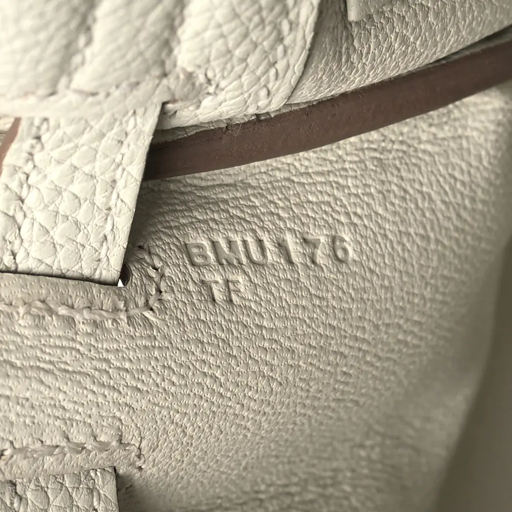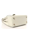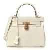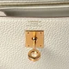 This Hermès Kelly Retourne 25 in white leather showcases a soft and versatile design. It features gold hardware that enhances its earthy tone, making it a standout piece. The single top handle and detachable shoulder strap provide versatile carry options. Its spacious interior is secured with the iconic Kelly lock. Designed for both functionality and luxury, it complements casual and formal ensembles. A perfect addition for collectors of iconic Hermès pieces.