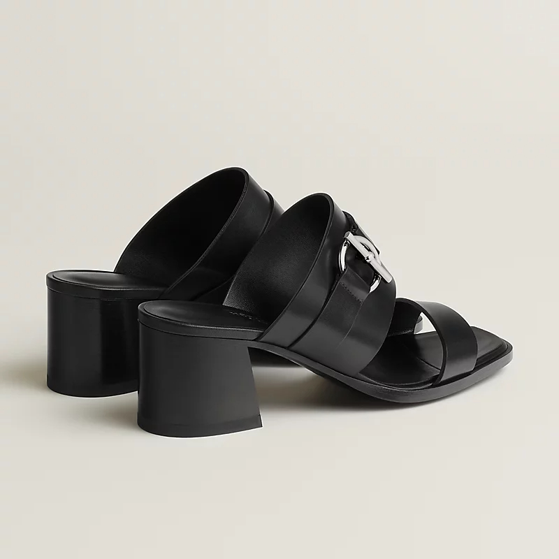 HERMES Kute Slippers High-heeled slippers Black High Heels Sandal