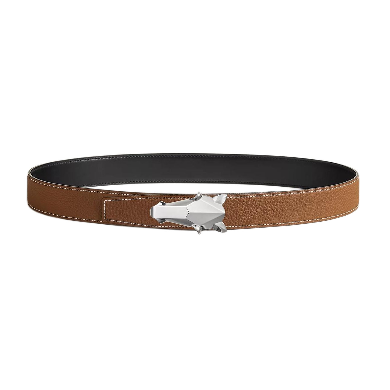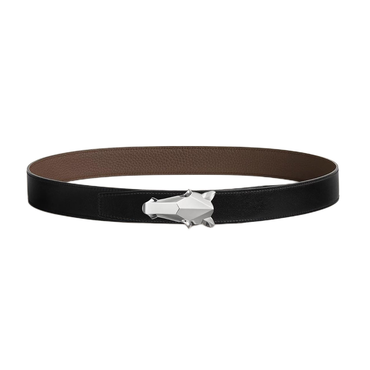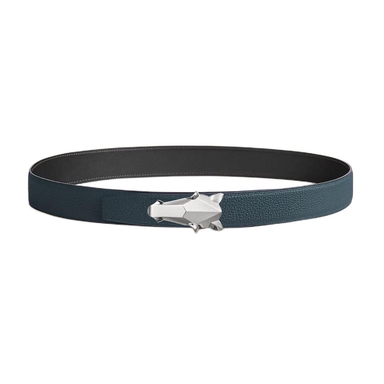 Hermès Men’ s Destrier Buckle Reversible Belt In Black/Etoupe/Coffee/Brown/Blue Grained Calfskin With Silver Hardware 32mm