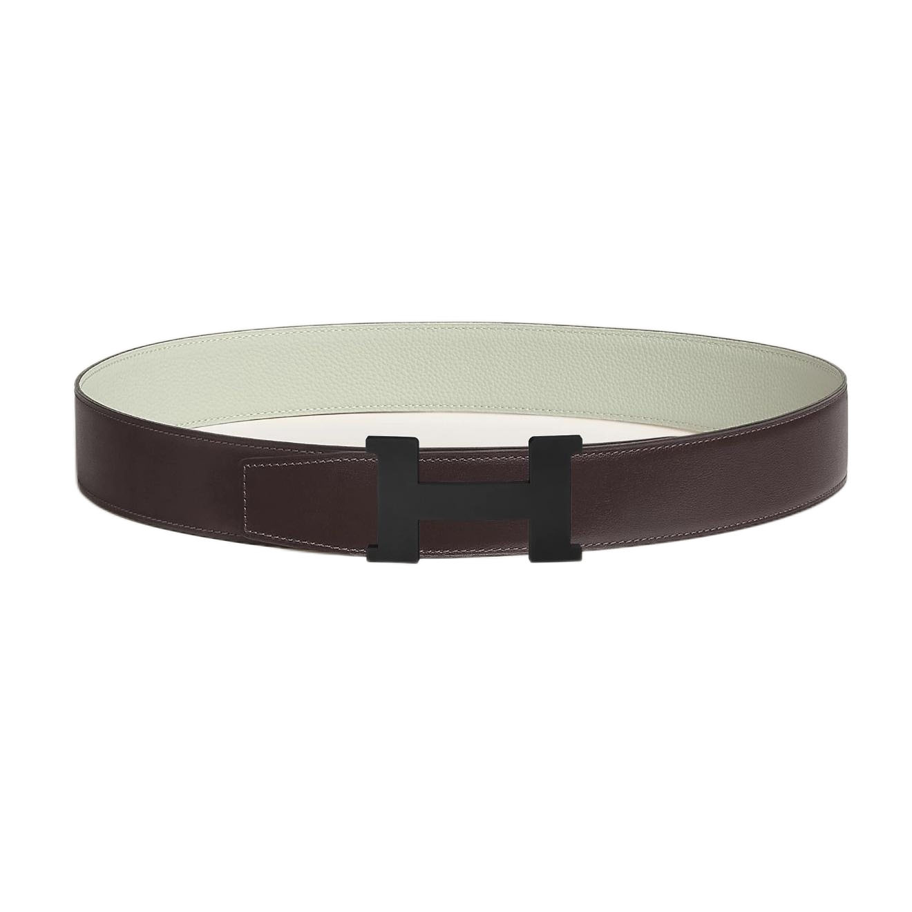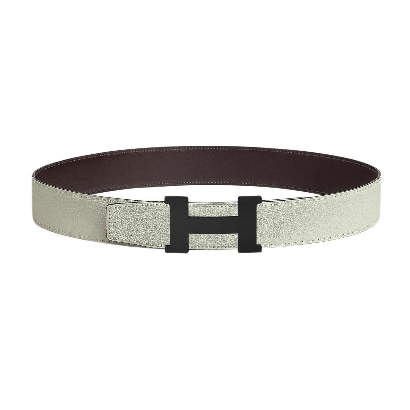 Hermès Men’ s H Buckle Reversible Belt In Brown/White Evercolor Calfskin With Gold/Black Hardware 38mm