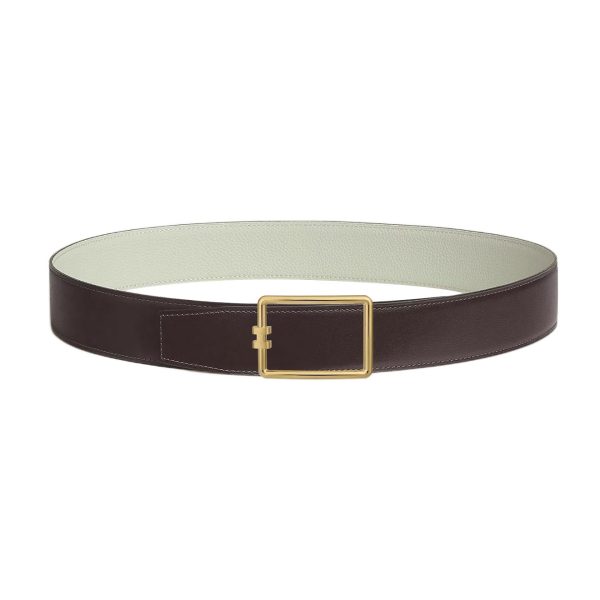 Hermès Men’ s Tube H Buckle Reversible Belt In Brown/White Evercolor Calfskin With Gold/Silver Hardware 38mm