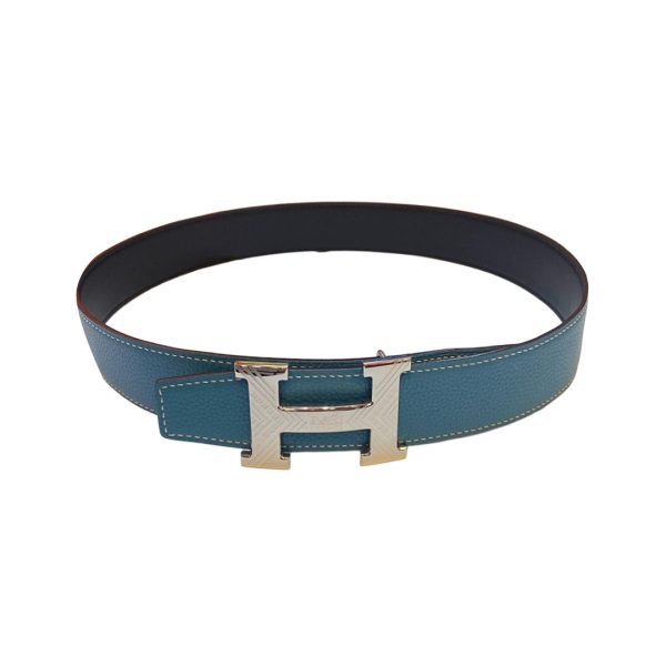 Hermès Men’s H Buckle Belt In Blue/Brown/Burgundy Calfskin With Gold/Silver Hardware 38mm