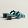 HERMES Oasis Slippers Green High-heeled slippers Blue High Heels Sandal