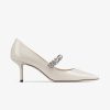 JIMMY CHOO Crystal decorated linen patent leather heels