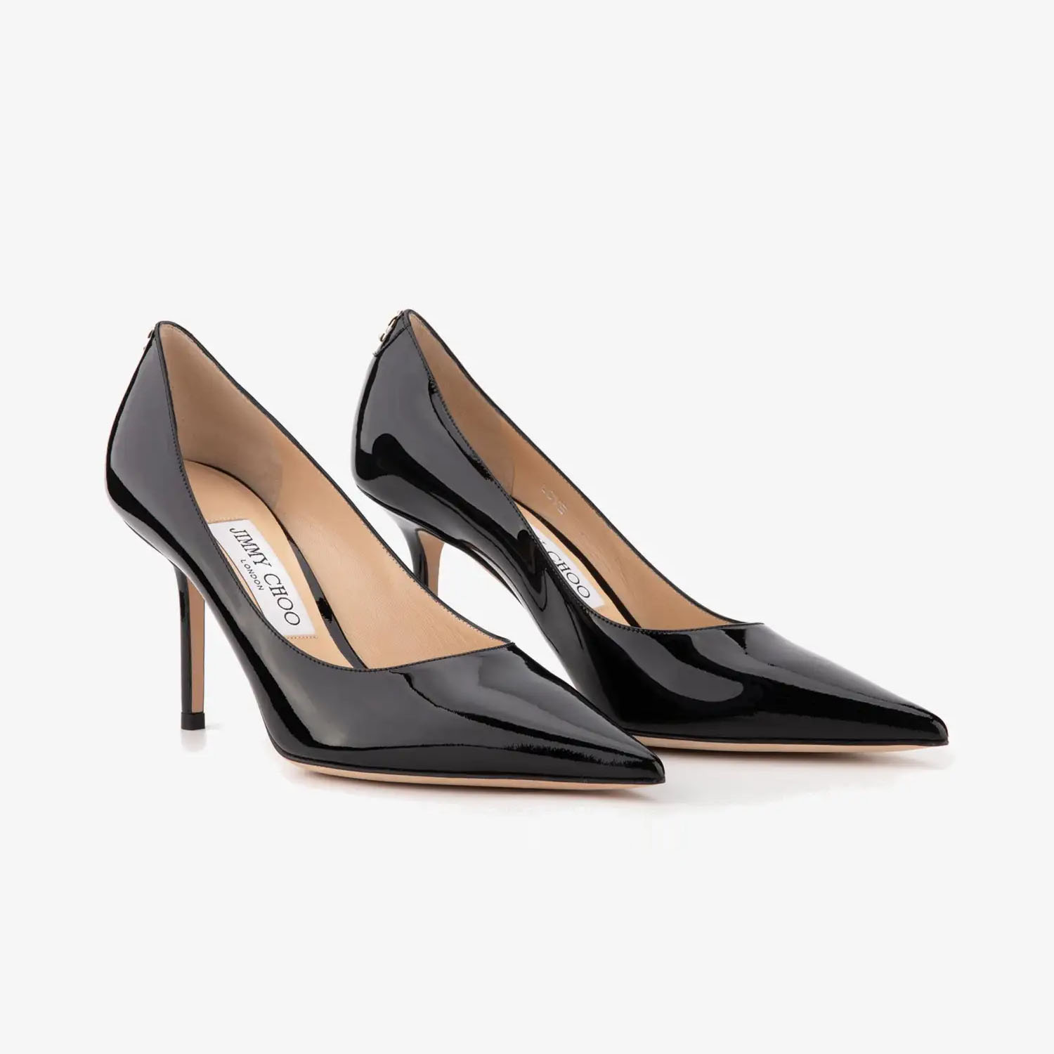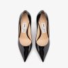 JIMMY CHOO JC badge embellishes black Patent paint leather high heels