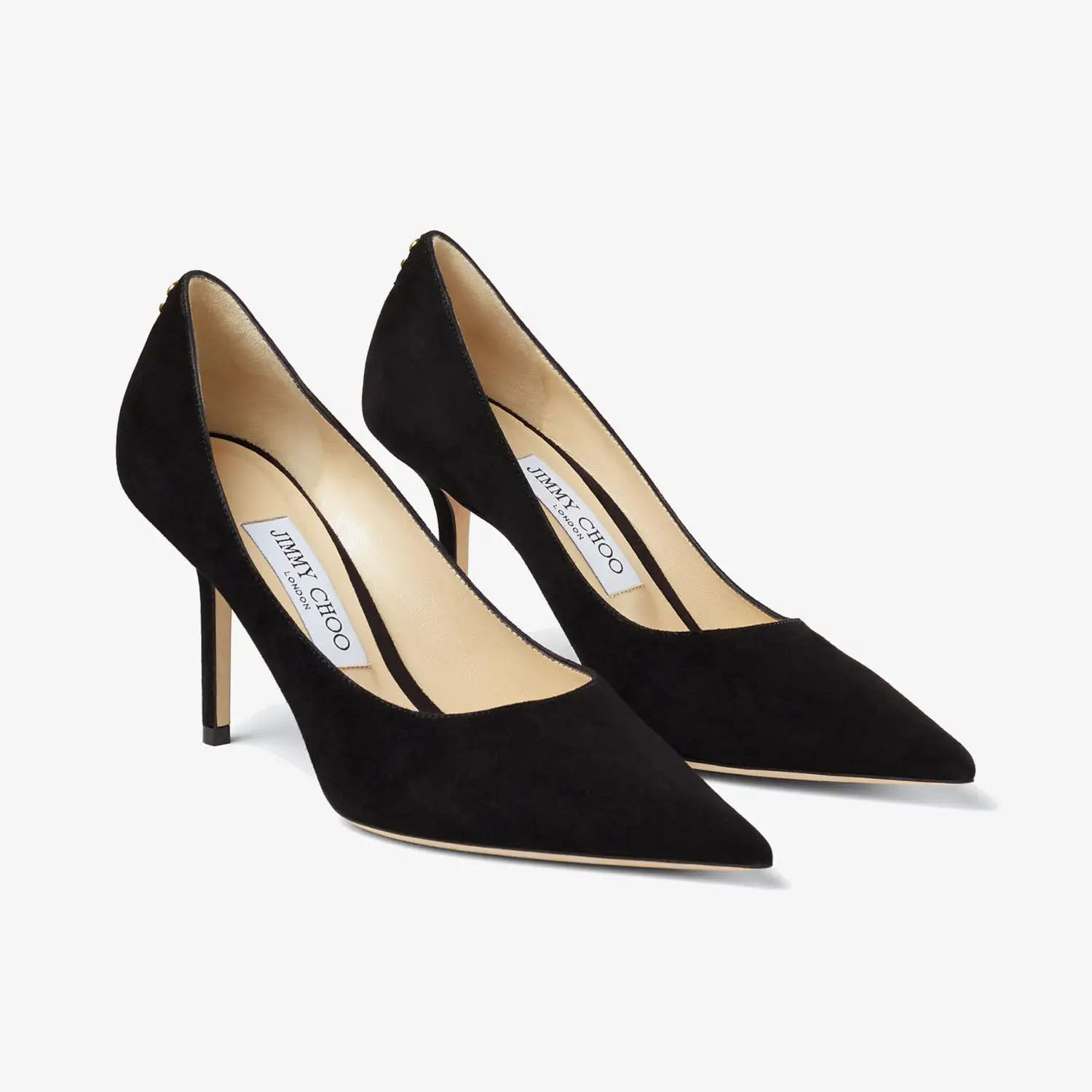 JIMMY CHOO JC logo buttoned black Velvet fabric pointy heels