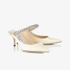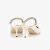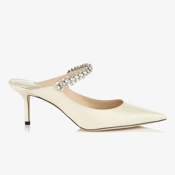 JIMMY CHOO Linen-colored patent leather crystal strap Moeller shoes