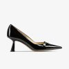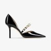 JIMMY CHOO Pearl embellished lacquered leather pointed high heels