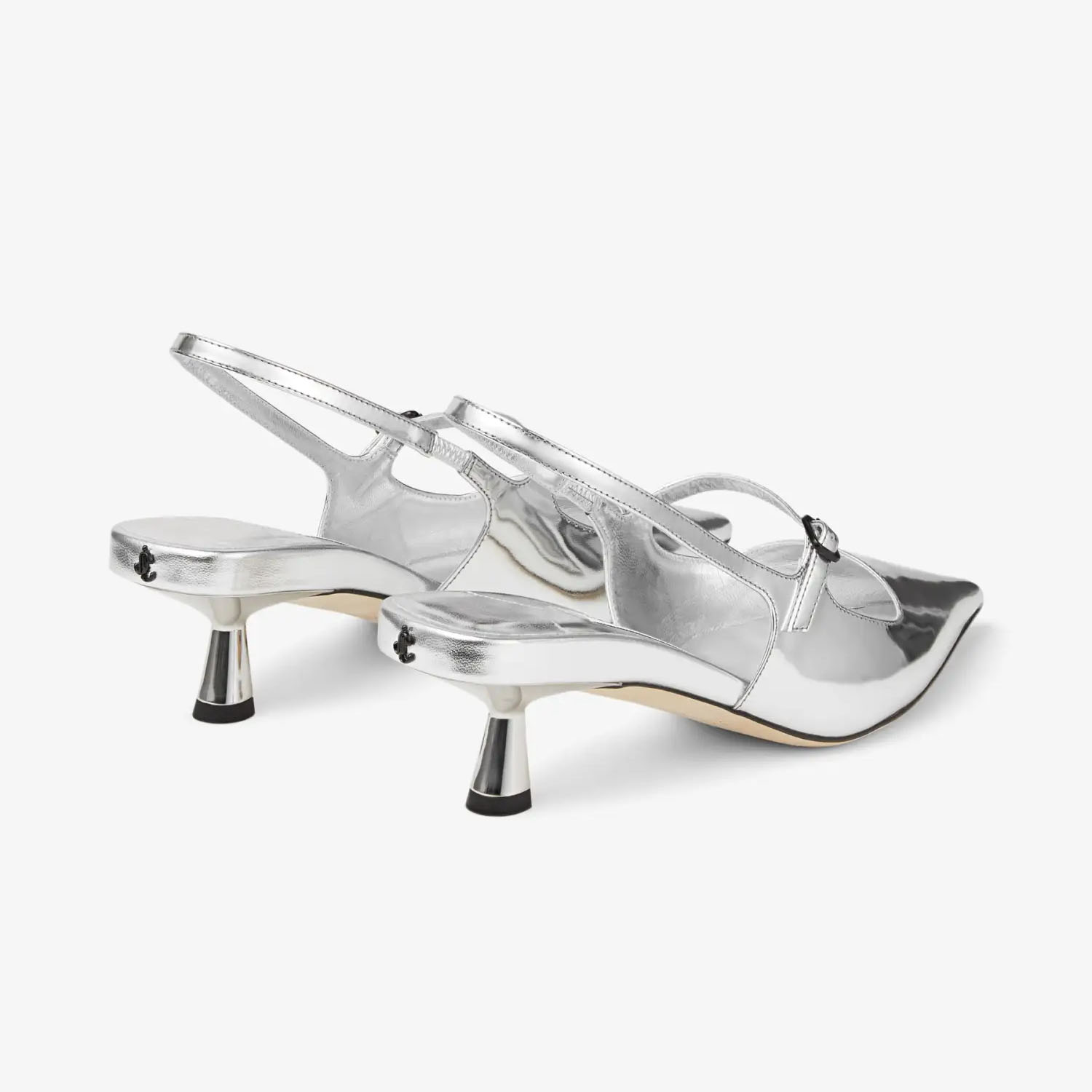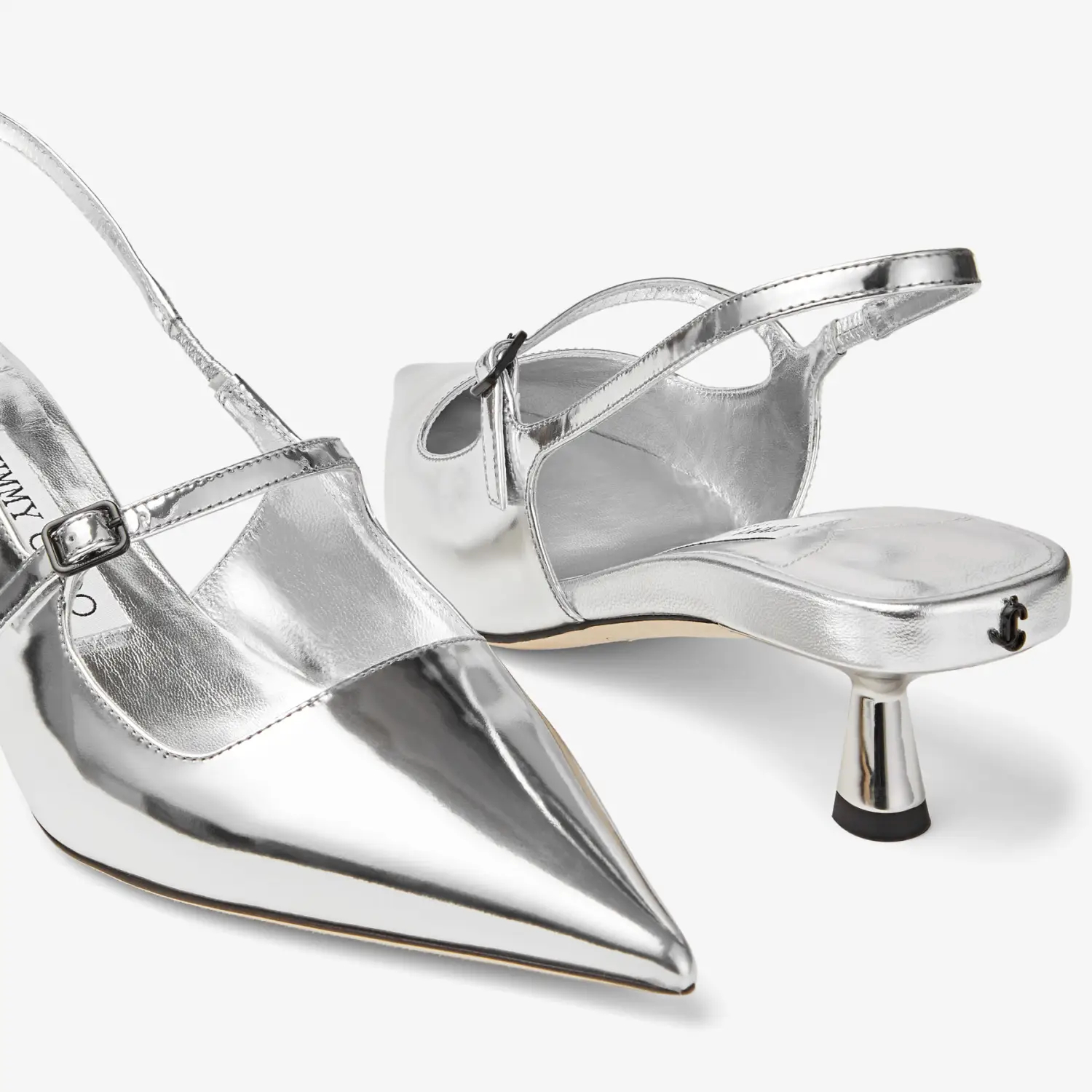 JIMMY CHOO Silver liquid metallic leather pointed high heels