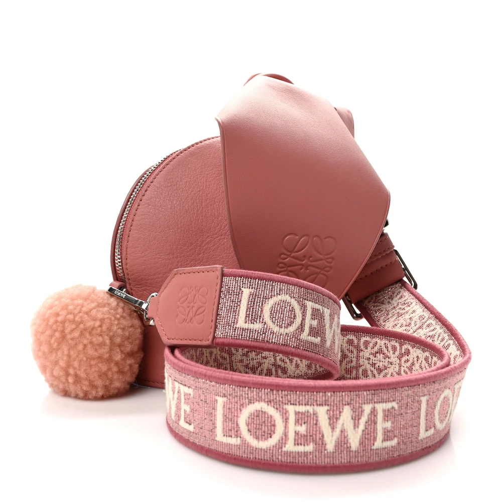This Loewe Bunny Shoulder Bag Small in Peach Bloom combines calfskin leather and shearling with whimsical charm. Compact and playful, it’s ideal for essentials. The peach bloom tone adds delightful color. Adjustable strap ensures versatile styling. A unique and fun accessory. Perfect for adding character to any outfit.