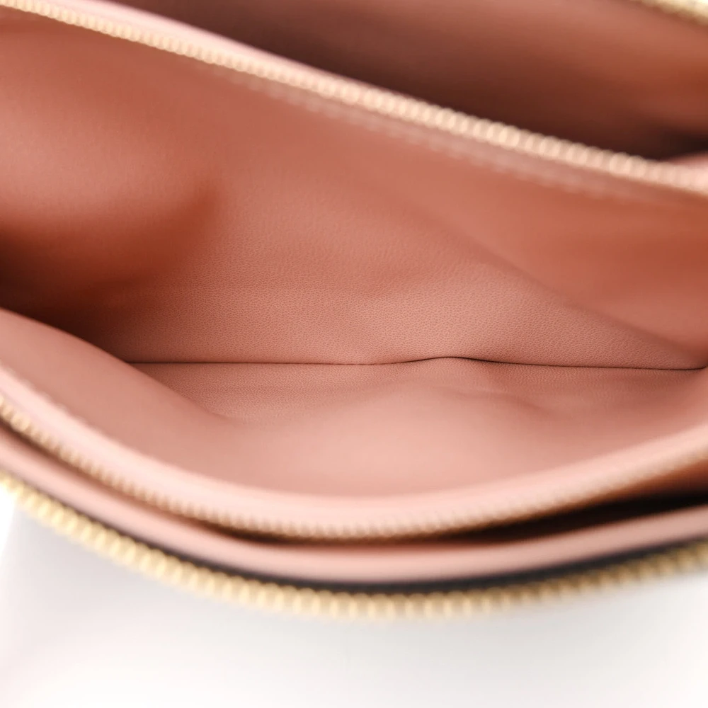 This Louis Vuitton Black Embossed Monogram Lambskin Leather Coussin PM exudes elegance with its plush lambskin material and embossed monogram pattern. The soft, structured silhouette is enhanced by gold hardware and a removable chain strap. Inside, the black microfiber lining adds a luxurious touch, making it a versatile and chic accessory.