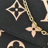 This Louis Vuitton Black/Beige Giant Monogram Empreinte Leather Felicie Pochette PM Gold Hardware is the ultimate blend of luxury and practicality. The embossed monogram empreinte leather adds texture and sophistication, while the gold hardware elevates its style. The compact design includes two large compartments, making it easy to organize your essentials like cards, cash, and a phone. The chain strap allows for versatile wear, whether you carry it on your shoulder or as a clutch. Its elegant design makes it perfect for both casual outings and more formal events. A perfect piece for those who love chic, functional accessories.