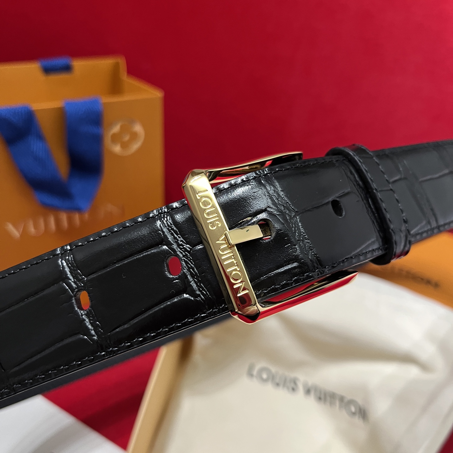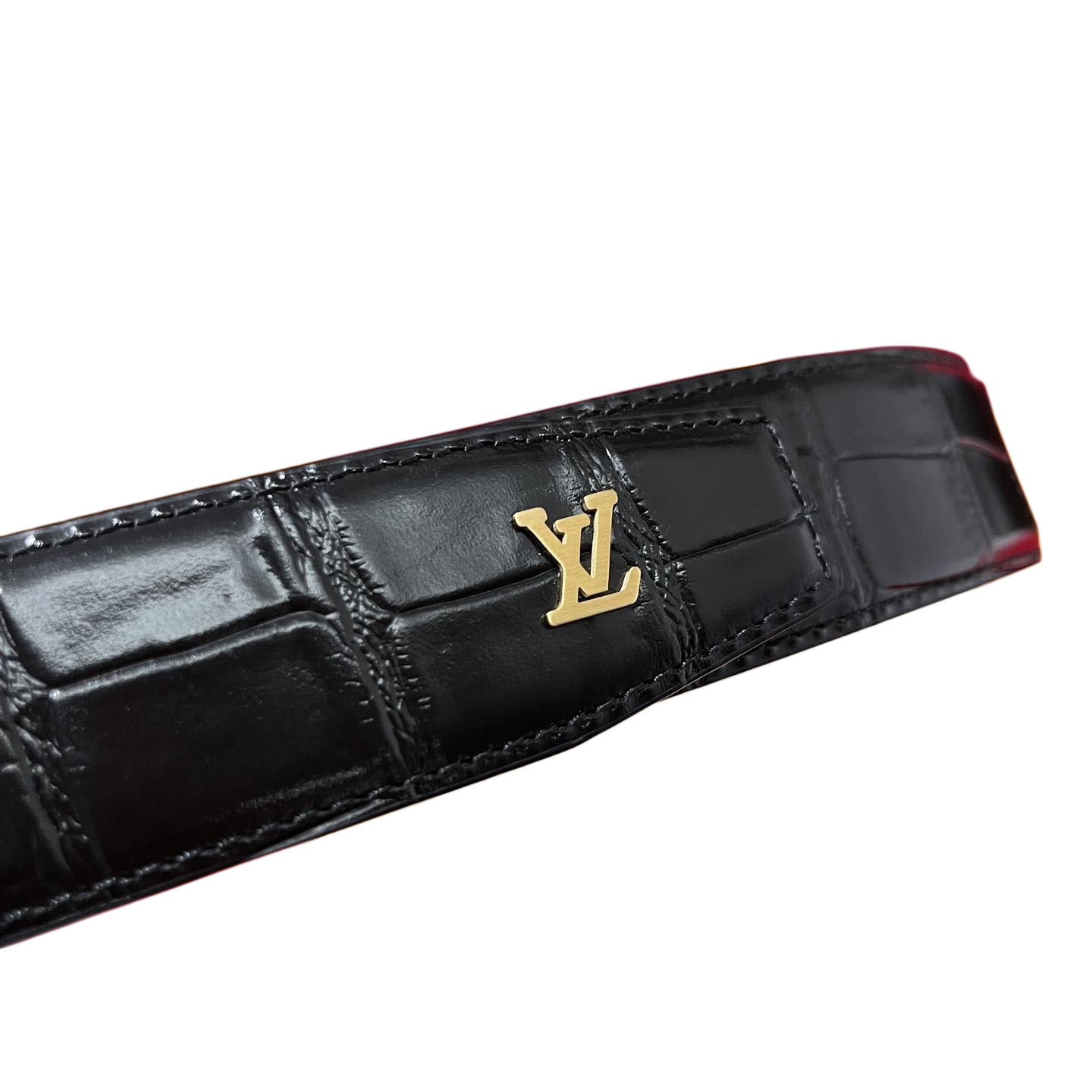 Louis Vuitton Men’s Heritage Belt In Black Crocodile-Embossed Calfskin With Gold/Silver/Black Hardware 35mm