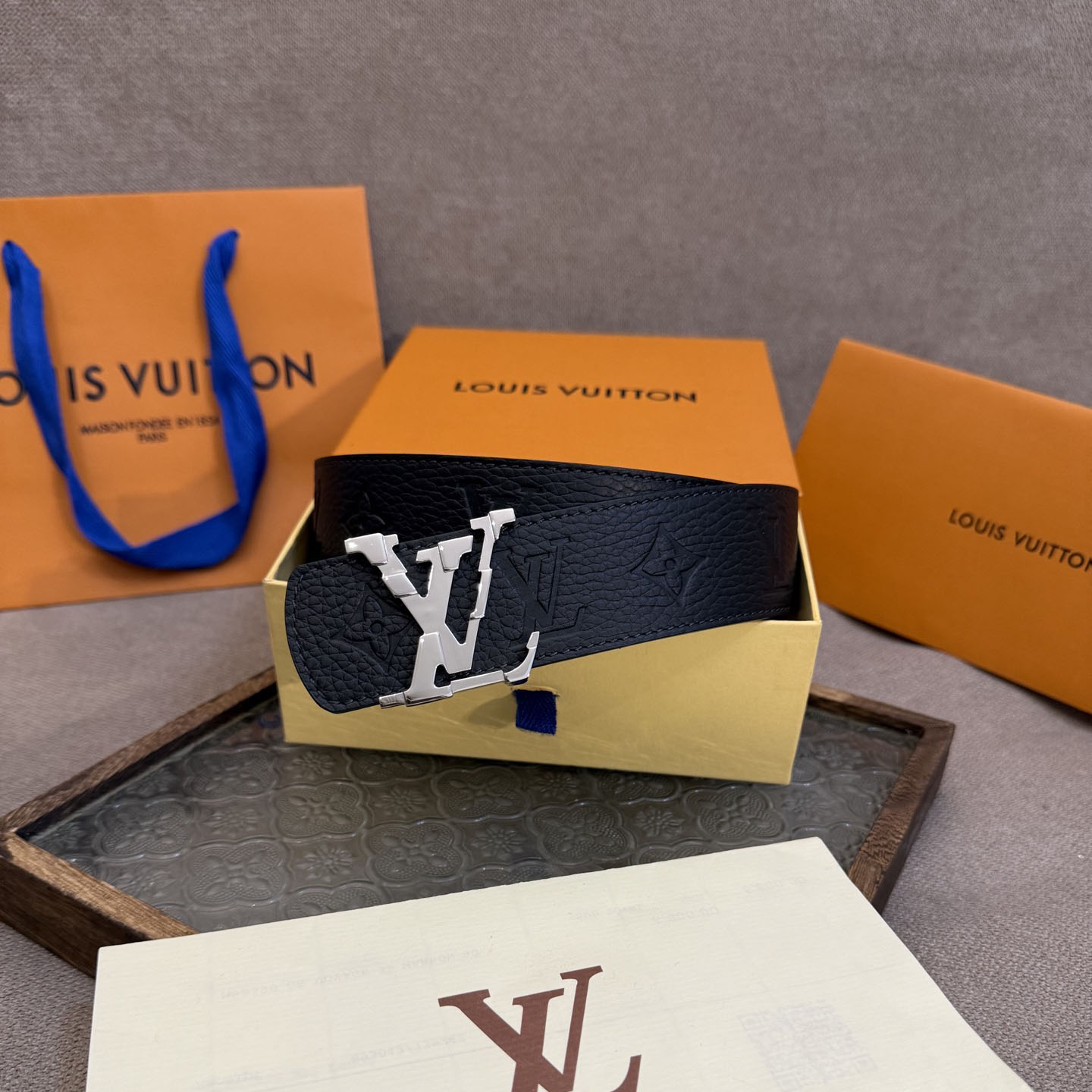 Louis Vuitton Men’s Shield Reversible Belt In Black Monorgam Calfskin With Gold/Silver/Gun Black Hardware 40mm