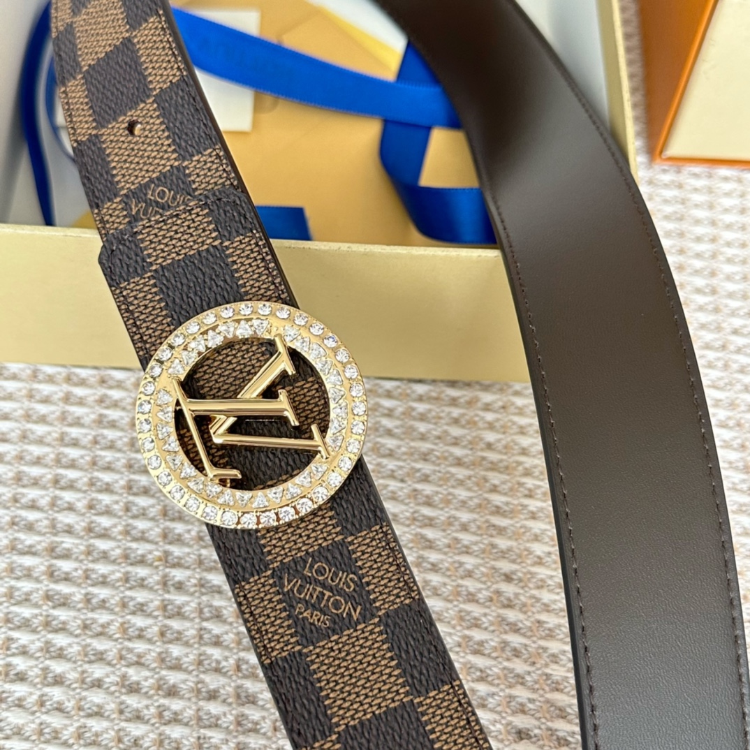 Louis Vuitton Women’s Diamonds Nautical Buckle Reversible Belt In Black/Brown Calfskin And Damier Canvas With Gold/Silver Hardware 35mm