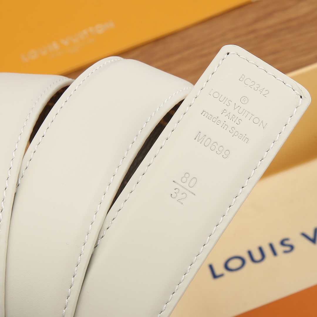 Louis Vuitton Women’s Pretty LV Reversible Belt In White/Black Calfskin And Monogram Canvas With Gold/Silver/Black Hardware 30mm