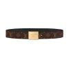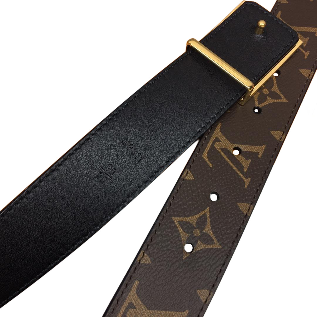 Louis Vuitton Women’s Square Buckle Reversible Belt In Black Calfskin And Monogram Canvas With Gold Hardware 35mm