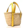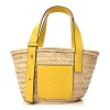 This Loewe Basket Tote Bag Small in Naturale/Yellow combines raffia and calfskin leather for a fresh look. Spacious and practical, it’s ideal for daily use. The natural and yellow tones add a vibrant charm. Perfect for summer outings or casual errands. Sturdy handles ensure comfortable carrying. A functional yet stylish choice.