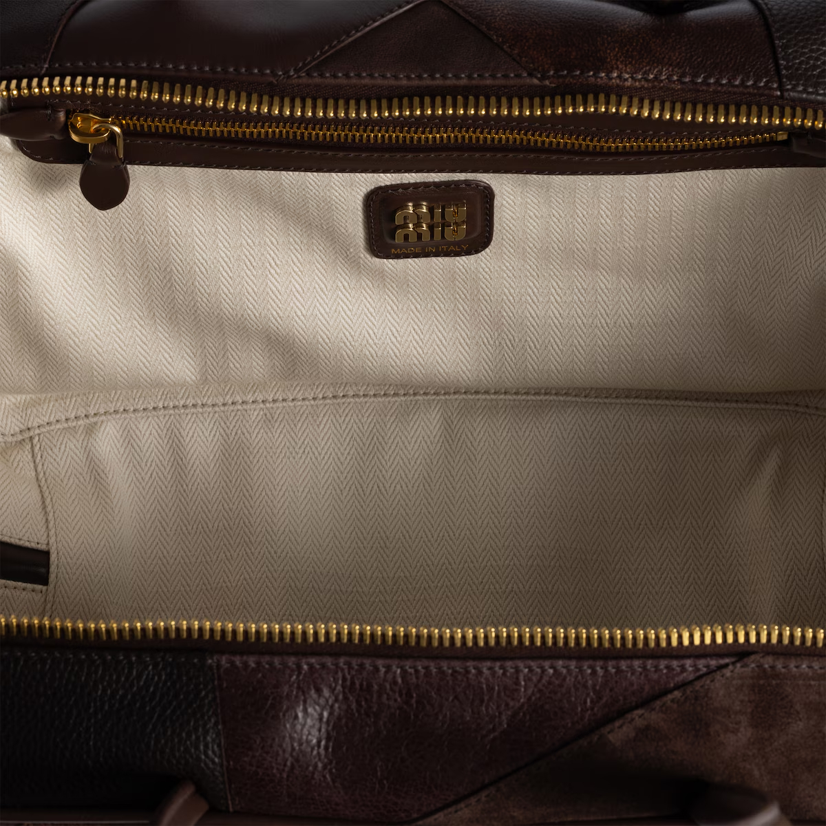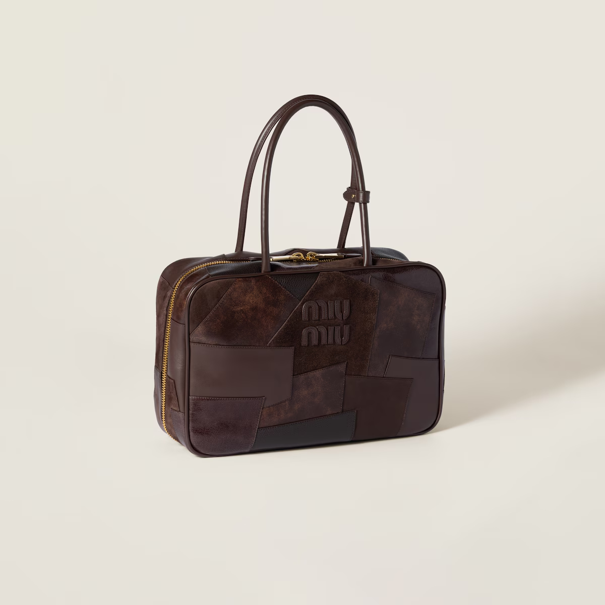Miu Miu Beau Leather / Suede splicing Deep Brown Top-Handle Bags