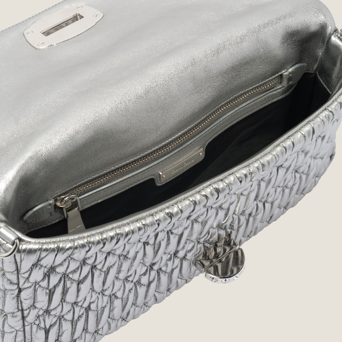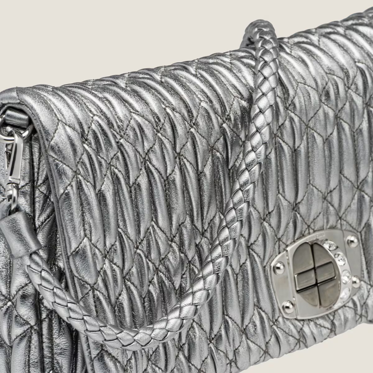 Miu Miu Quilted Lambskin Leather Silver Evening Bags