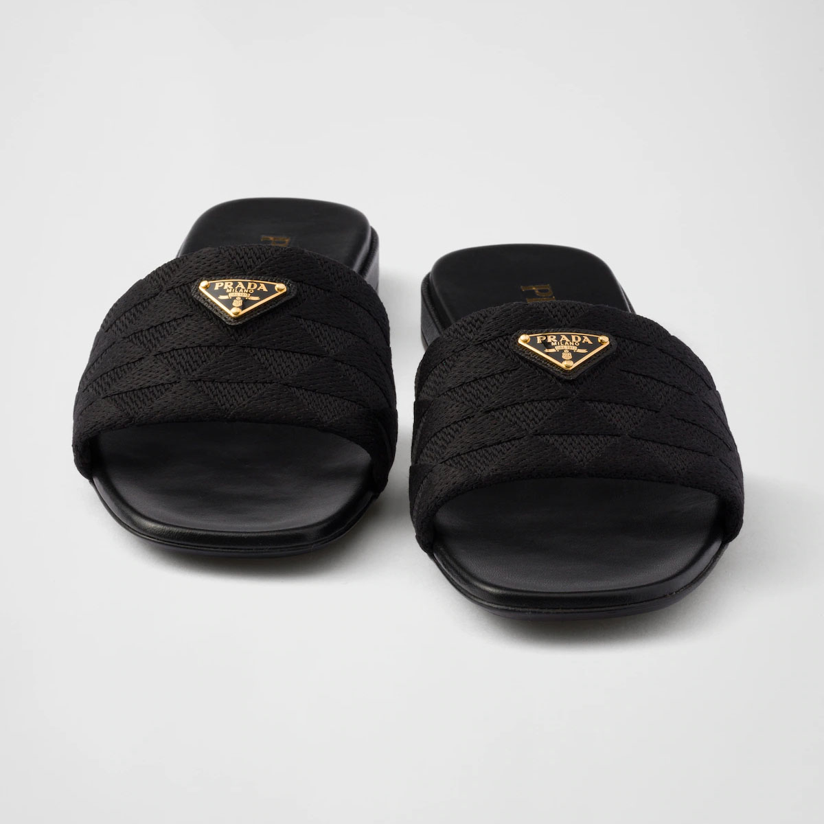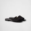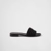 PRADA Black embroidered fabric slippers