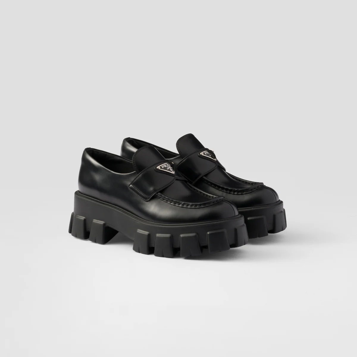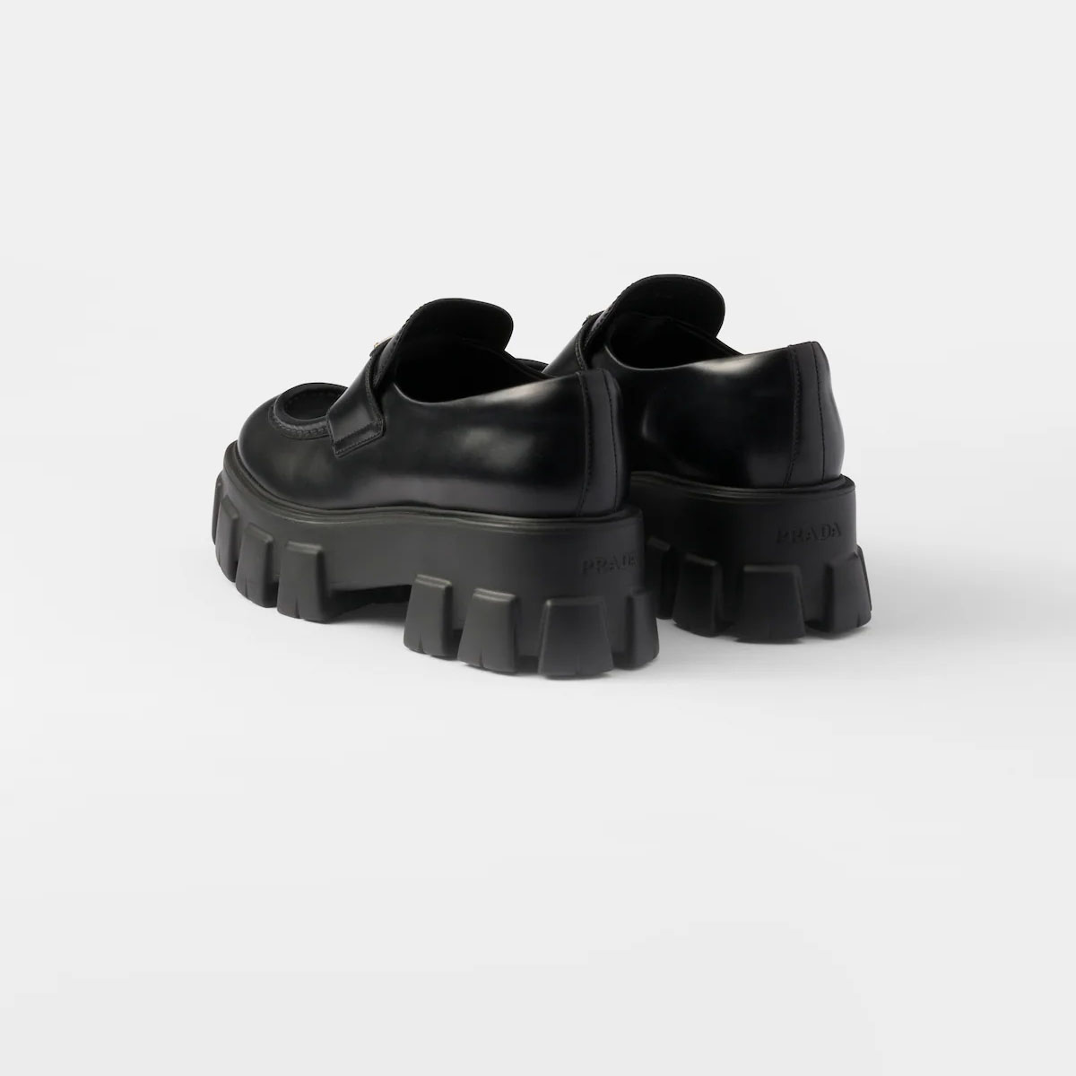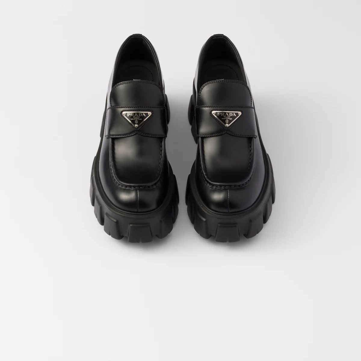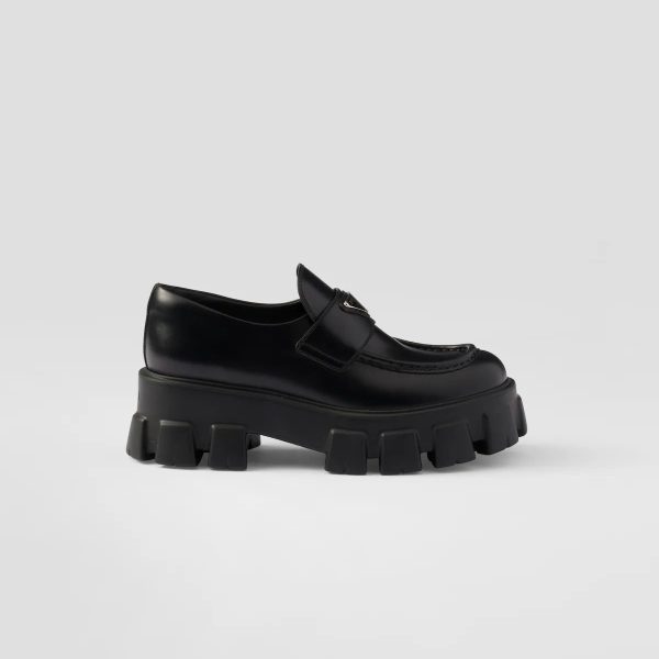 PRADA Black Monolith shiny leather Loafers