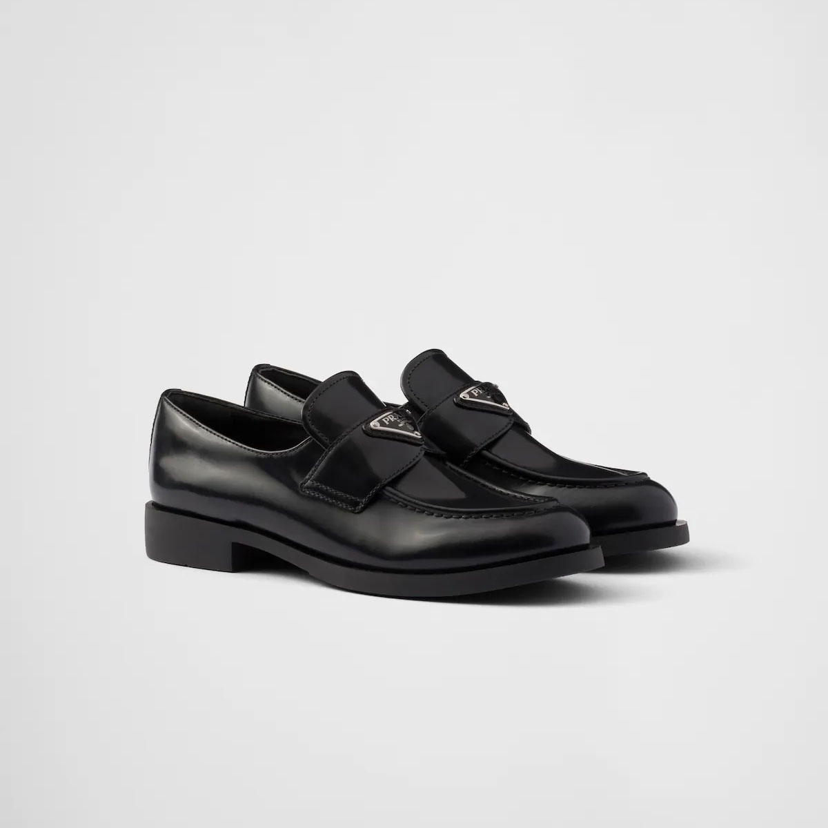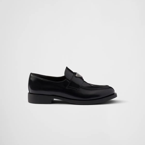 PRADA Black shiny leather loafers