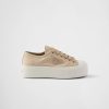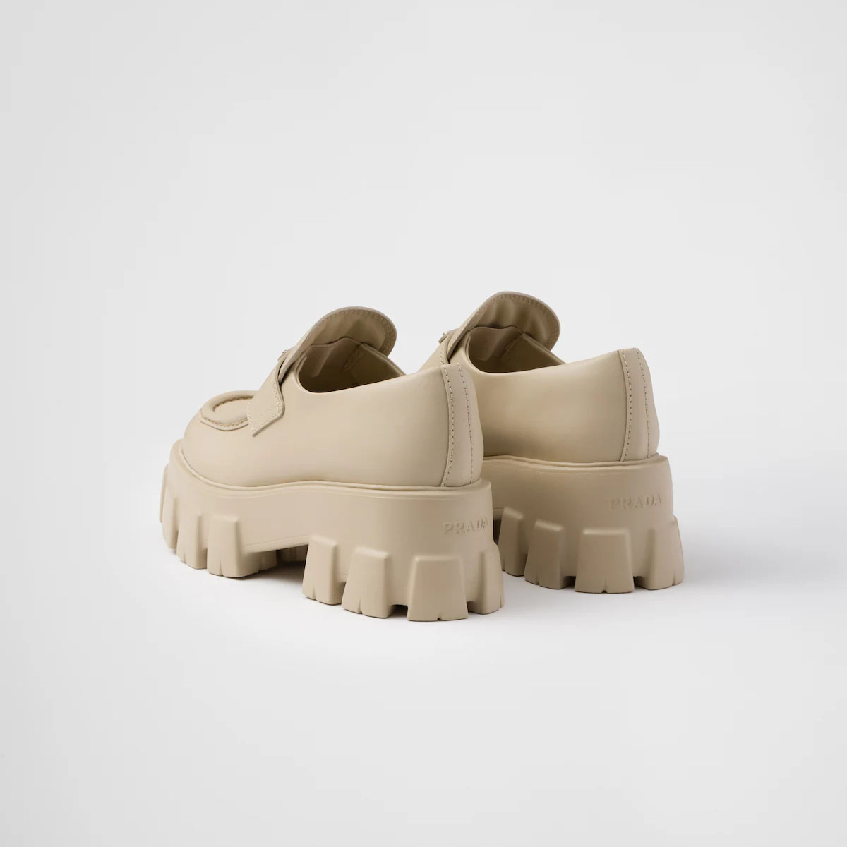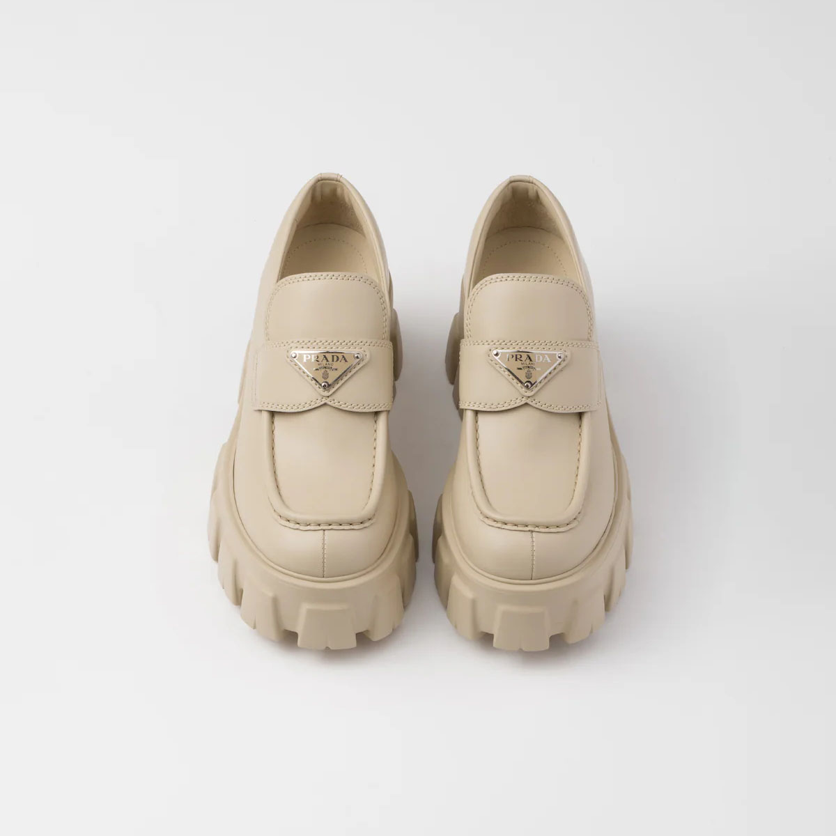 PRADA Desert Yellow Monolith shiny leather loafers