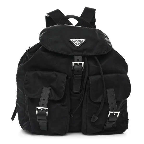 Prada Medium Backpack Black Re-Nylon & Saffiano Leather Silver Hardware