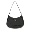 Prada Medium Cleo Shoulder Bag Scarlatto/Black Spazzolato Leather Silver Hardware