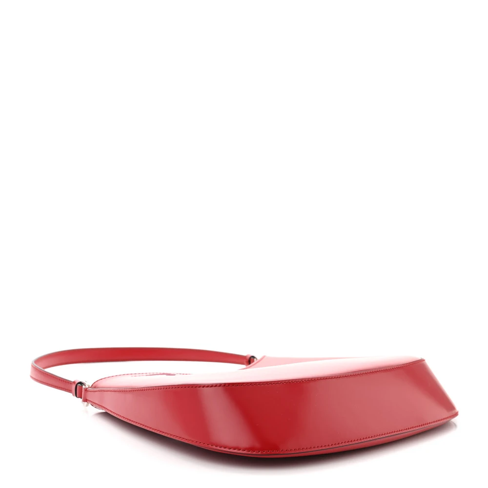 This Prada Medium Cleo Shoulder Bag in Red is crafted from spazzolato leather. Silver hardware enhances its elegant design. Spacious and versatile for daily essentials. Comfortable strap for effortless carrying. Perfect for casual or formal occasions. A timeless and chic accessory.