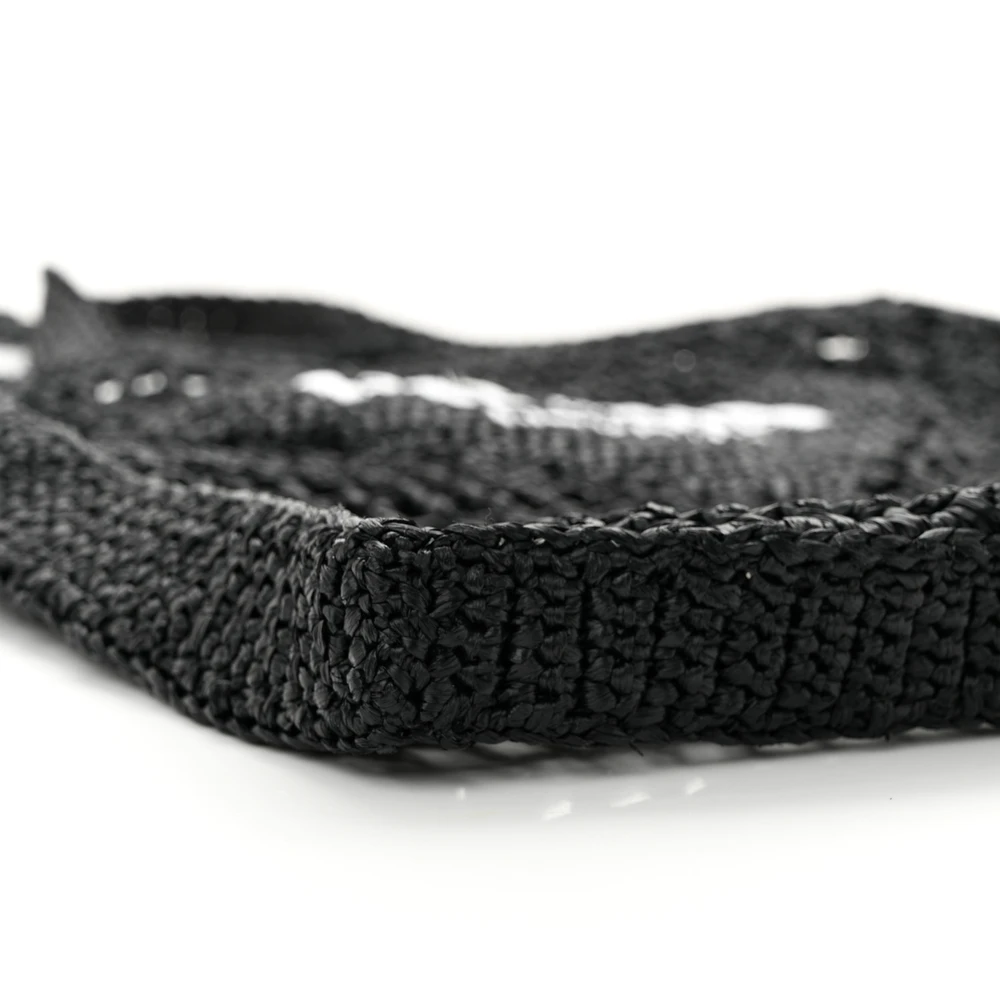 This Prada Medium Effect Crochet Logo Embroidered Tote in Black is made from yarn raffia. Lightweight and spacious for essentials. Comfortable handles for easy carrying. A trendy accessory for summer outings. Perfect for casual or beach settings. A stylish addition to your wardrobe.