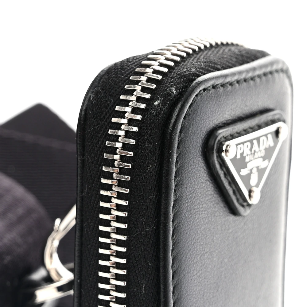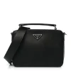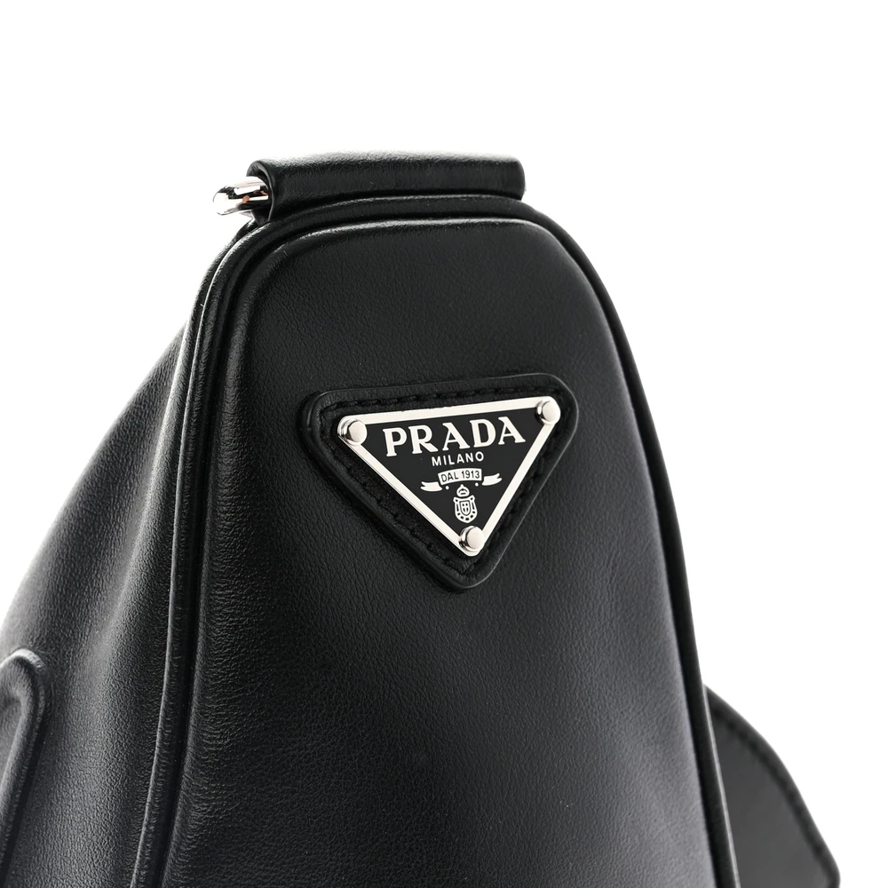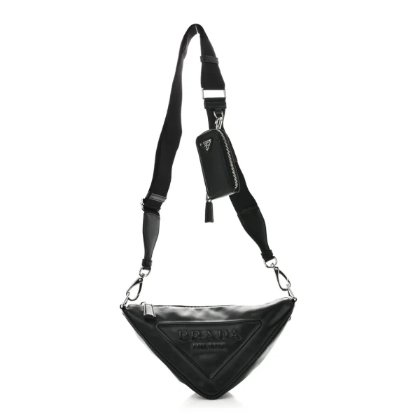 Prada Medium Triangle Shoulder Bag Black Calfskin Leather Silver Hardware