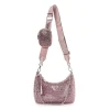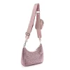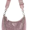 This Prada Re-Edition 2005 Shoulder Bag in Pink is made from satin and crystal. Silver hardware adds a luxurious accent. Spacious enough for evening essentials. Adjustable strap offers versatile styling options. Ideal for special occasions or glamorous events. A sparkling and elegant accessory.