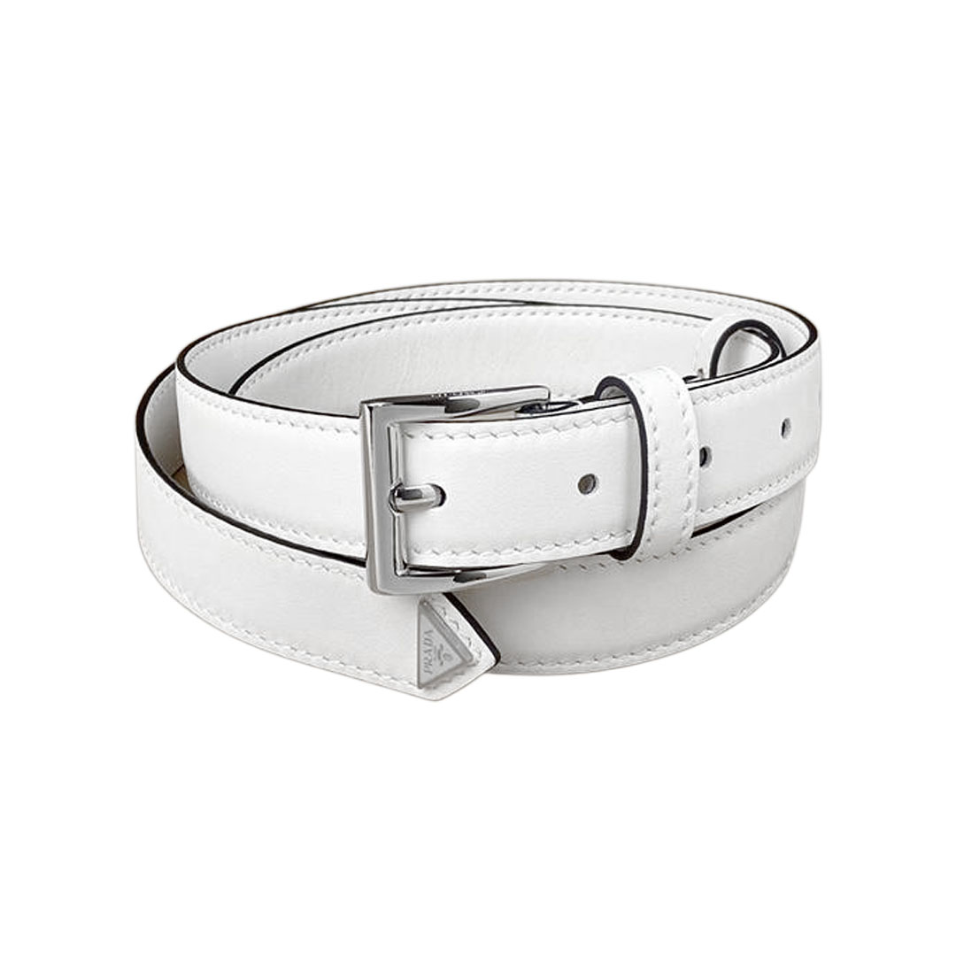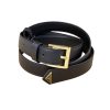 Prada Women’ s Square Buckle Belt In Black/Brown/White Calfskin With Gold/Silver Hardware 25mm
