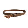 Prada Women’ s Triangled Buckle Intrecciato Belt In Brown/Black Lambskin With Gold Hardware 25mm