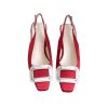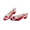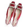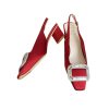 Roger Vivier Belle Viver Slingback Pumps High Heels In Red/Beige Satin With Crystal Buckle (Heel Height 4.5cm)
