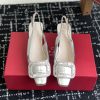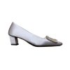 Roger Vivier Belle Viver Slingback Pumps High Heels In Silver Calfskin Leather With Crystal Buckle (Heel Height 4.5cm)