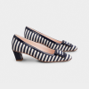 Roger Vivier Belle Vivier Pumps High Heels In Navy Blue/White Canvas With Lacquered Metal Buckle (Heel Height 4.5cm)