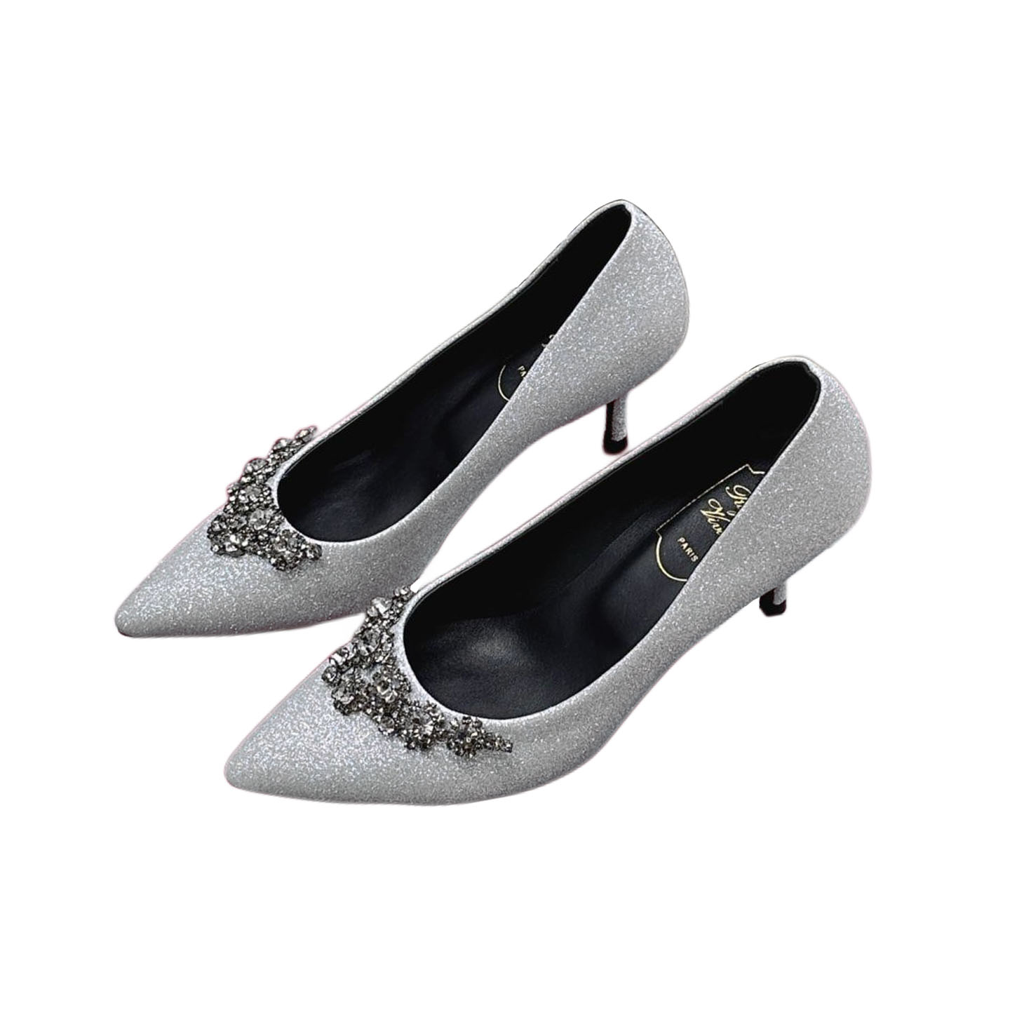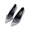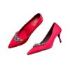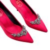 Roger Vivier Efflorescence Pumps High Heels In Red/Silver Satin With Crystal Flowers Buckle (Heel Height 6.5cm)