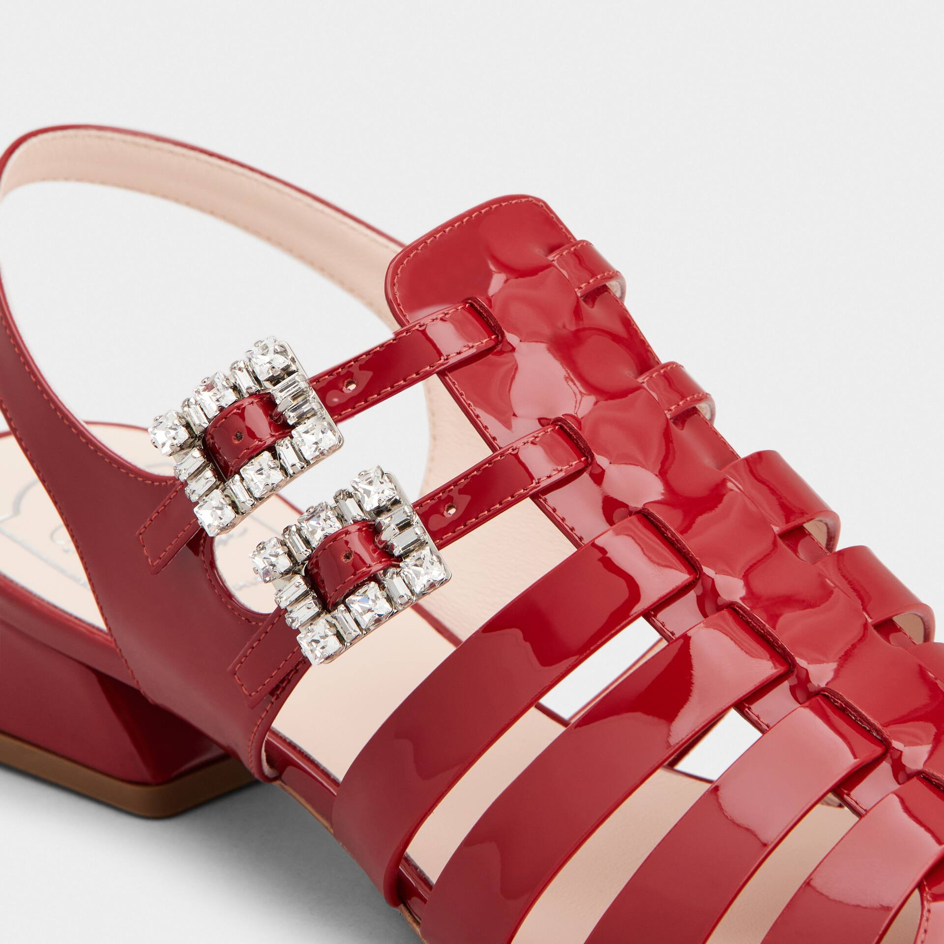 Roger Vivier Très Vivier Sandals In Red Patent Leather With Crystal Buckle (Heel Height 4.5cm)