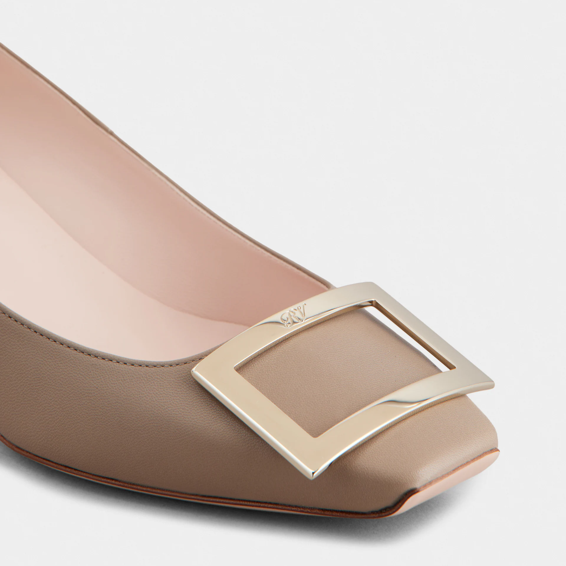 Roger Vivier Trompette Pumps High Heels In Beige Leather With Metal Buckle (Heel Height 4.5cm)