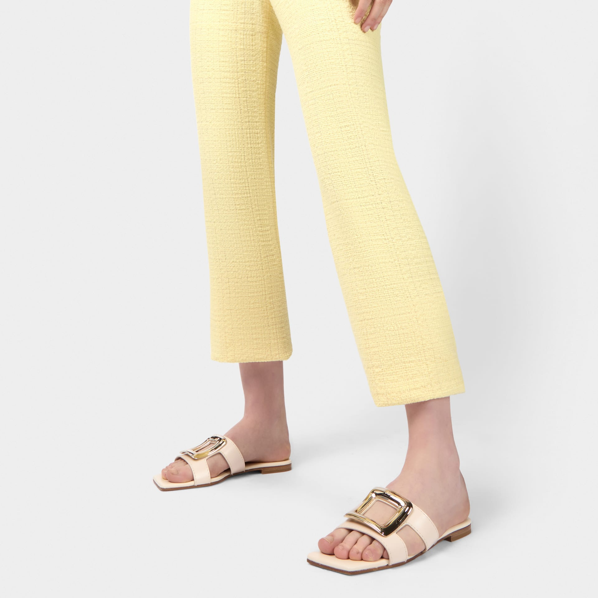 Roger Vivier Viv’ By The Sea Mules Flats In White Leather With Metal Buckle