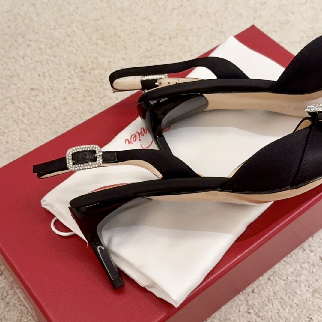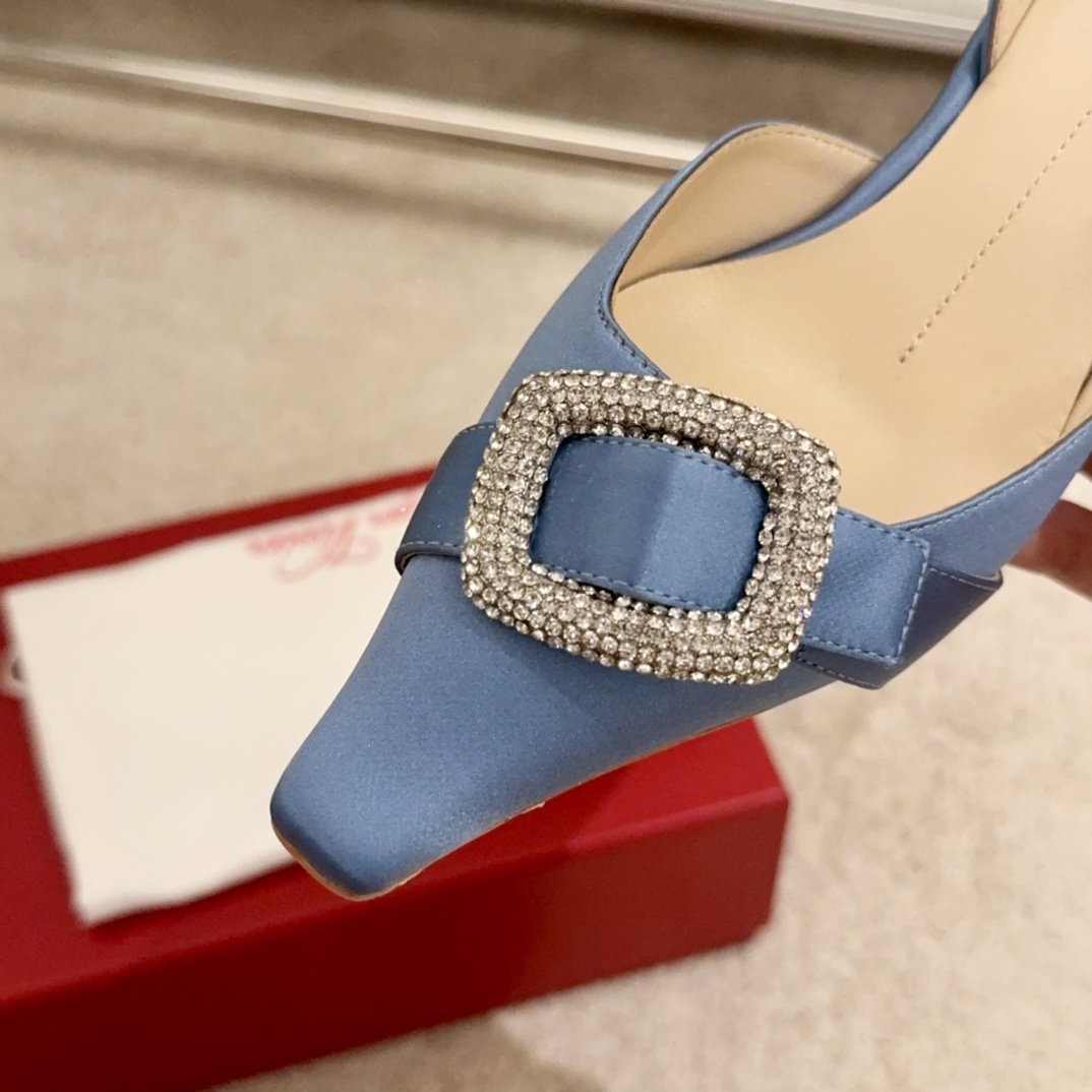 Roger Vivier Viv’Canard Pumps High Heels In Red/Black/Blue/Purple Satin With Crystal Buckle (Heel Height 5.5cm)